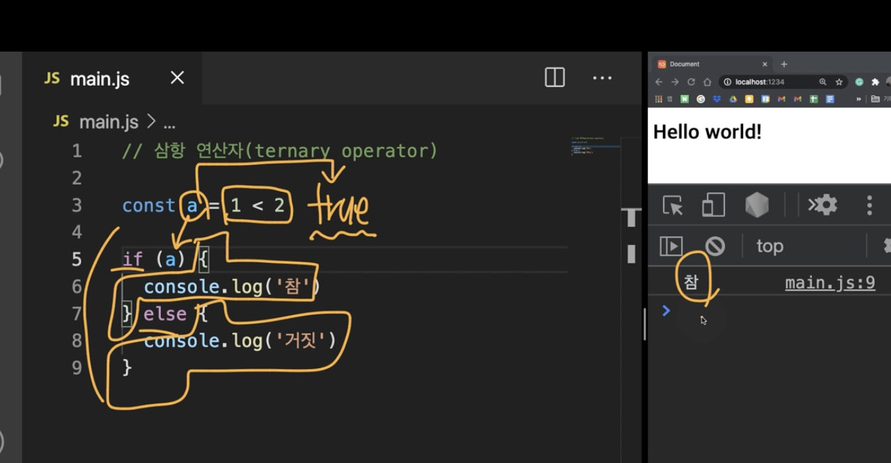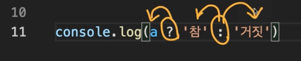 console. log( a ? '참' : '거짓' )