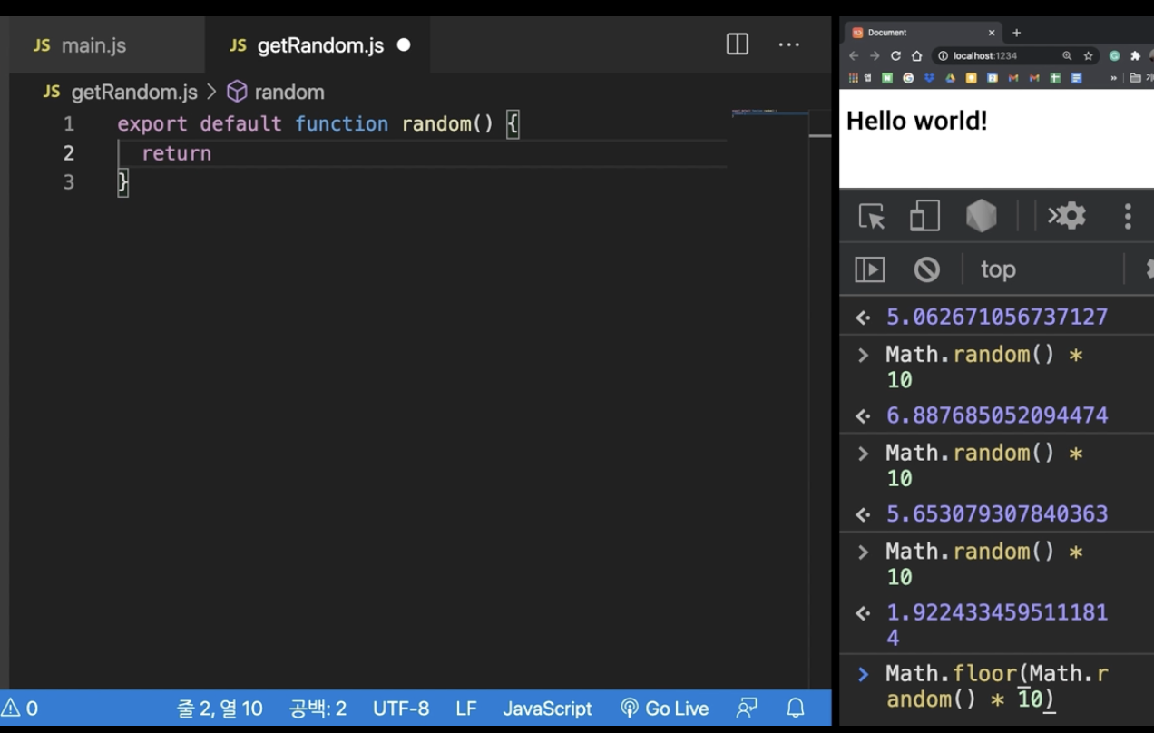 getRandom.js 파일을 만들고 그 안에 이렇게 기록한다.