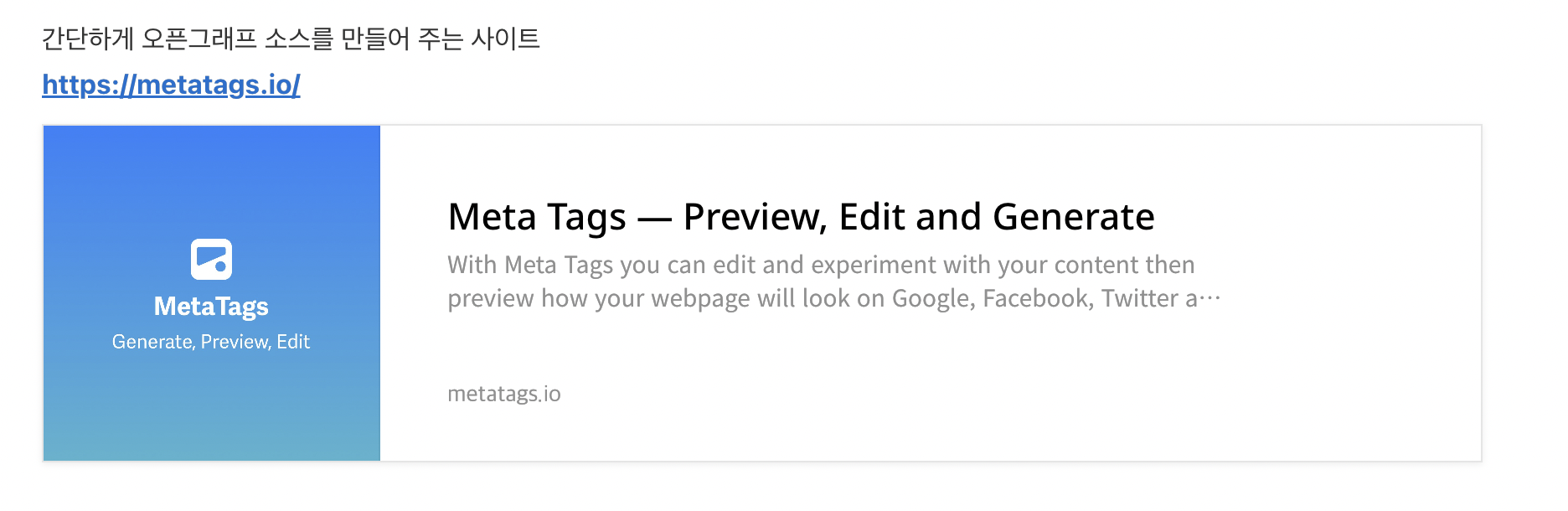 간단하게 오픈그래프 소스를 만들어 주는 사이트
