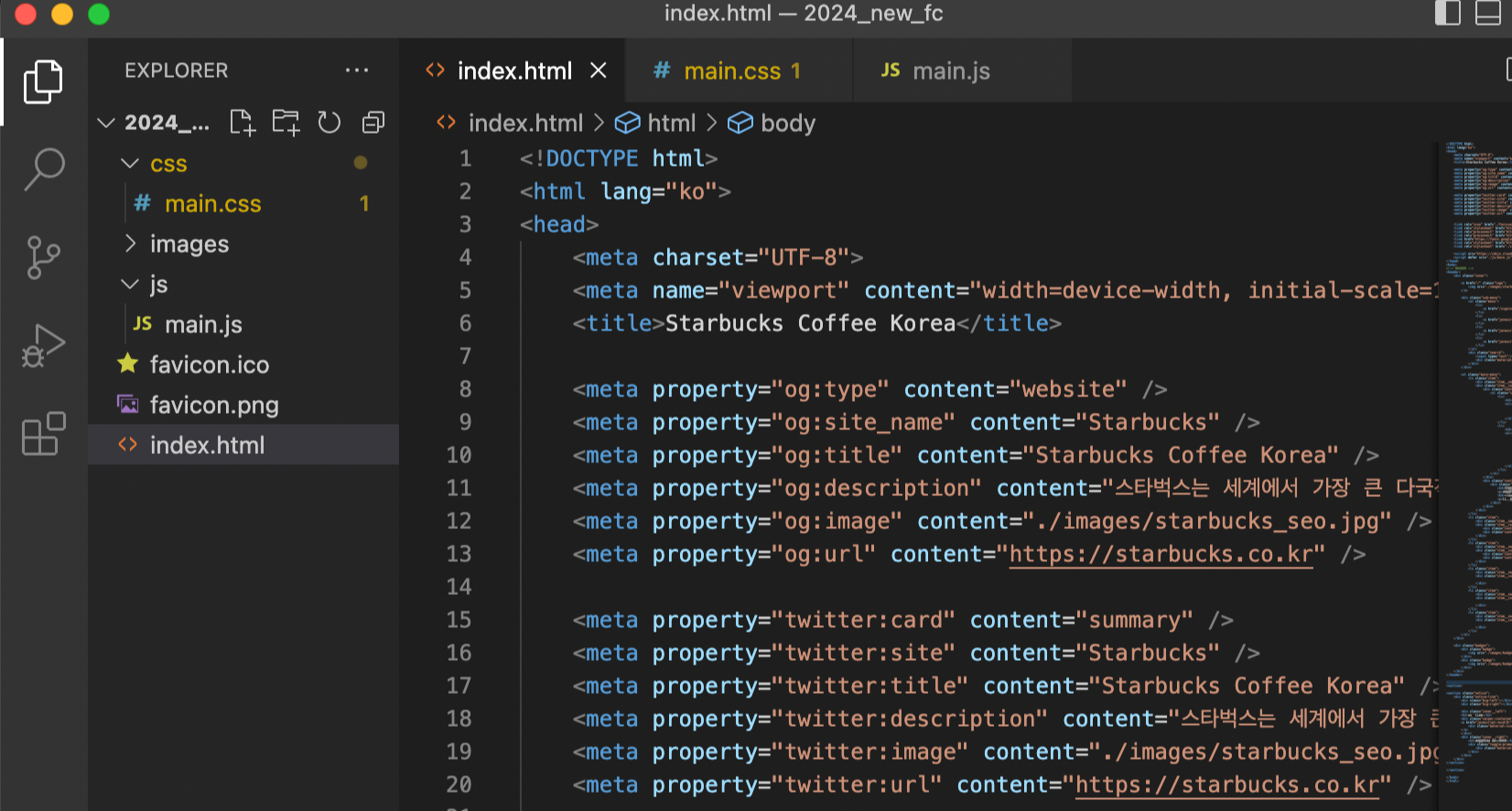 그리고 진행중인 코드 html 내용 중 일부 메타태그 내용(스타벅스 사이트 기준이다._오픈된 소스 사용)