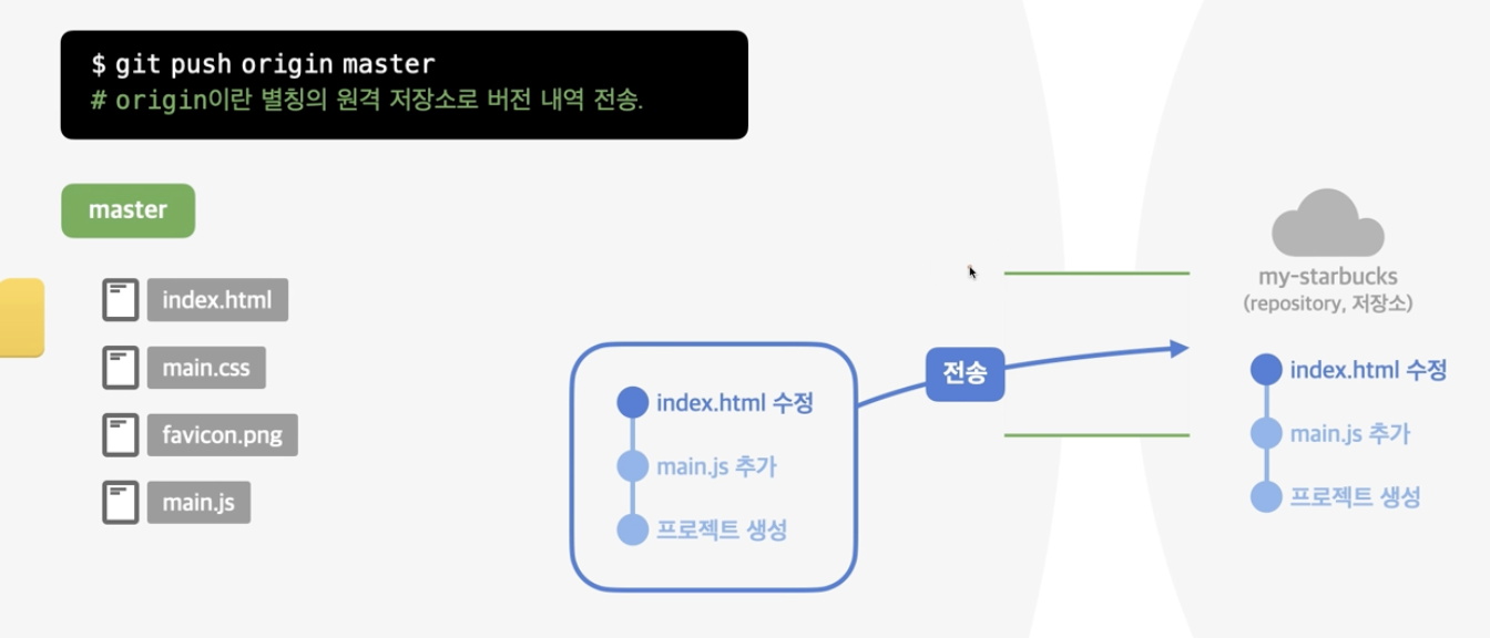 *origin이란 별칭의 원격 저장소로 버전 내역 전송