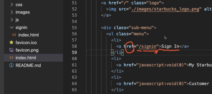 그리고 나서 index.html (signin 파일 안에 있는 거 아님!!) 부분에서