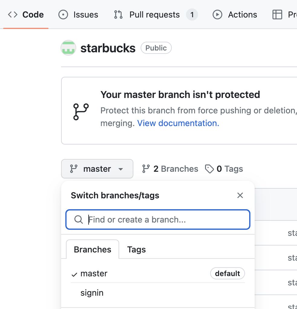 그리고 깃허브에 들어가서 확인해보면, branch에 master 말고도 signin 이 표시가 될 거다.